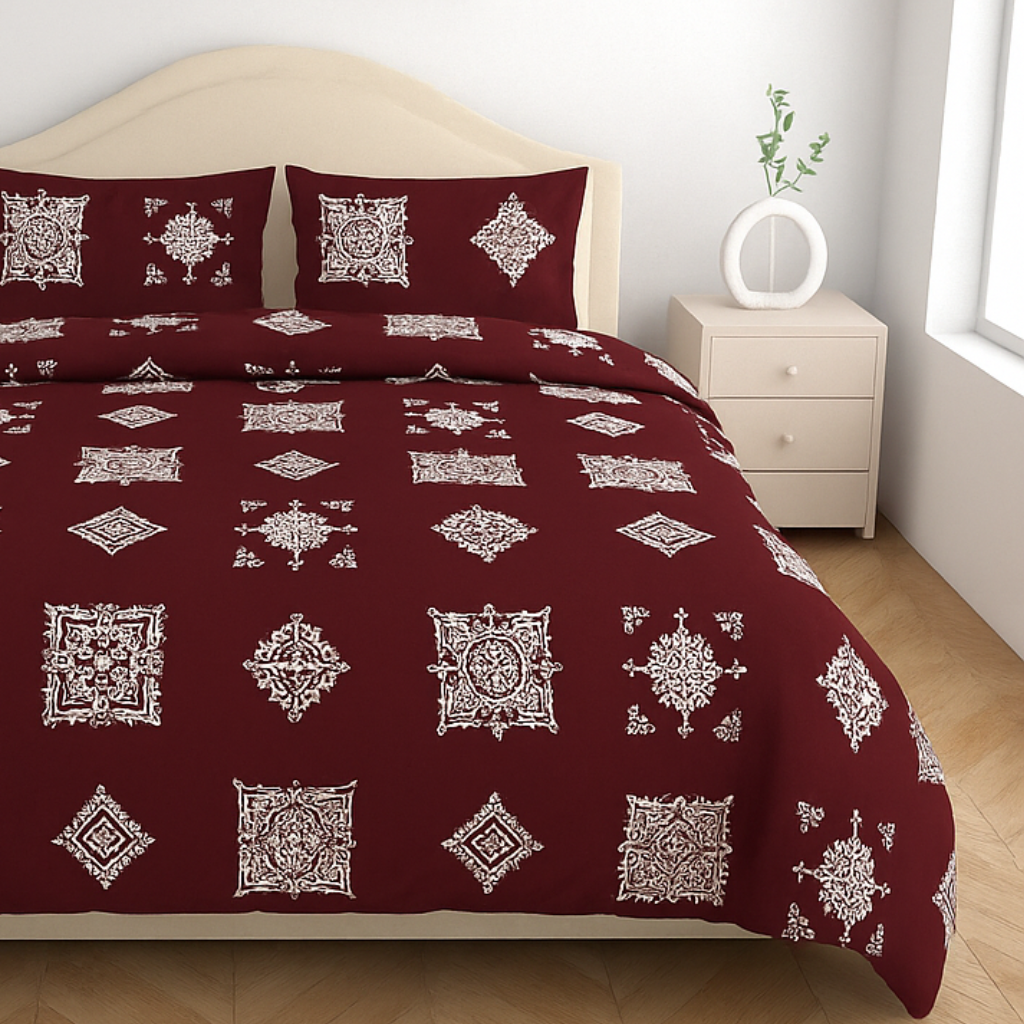Experience the perfect blend of comfort, elegance, and quality with our Premium Cotton Queen Double Bedsheet Set. Designed to bring a luxurious touch to your bedroom, this set includes: